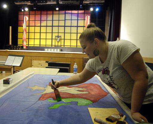 "The King and I" cast member Cheri Fakes of Addison paints a map to be used on the set in the musical. Mark Welsh | Staff Photographer