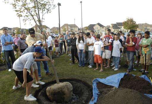 Friends and family gathered Friday to plant a tree in Mark's honor, and the school's parent organization will purchase library books for the school that he would have enjoyed.