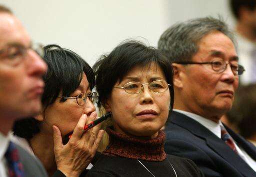 Gao Qin Sheng, second from right, mother of a reporter jailed in China, and human rights activist Harry Wu, right, listen as Yahoo Chief Executive Officer Jerry Yang and General Counsel Michael Callahan, not shown, testify Tuesday on Capitol Hill in Washington. Associated Press