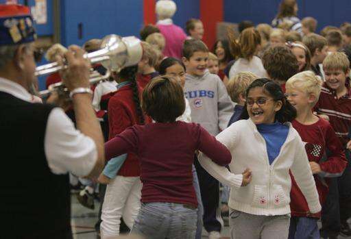 "I think this lets the kids appreciate, in a small way, what these men have done," said fifth-grade teacher Paula Valleskey, who organized the event. "Maybe they don't understand all of it, but they can understand the men's sacrifice when we take it out of the history books and put it in front of them."