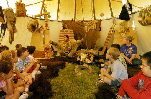 Terrace School students sit on buffalo skins in a teepee, learning about Western Sioux life. Bob Chwedyk | Staff Photographer