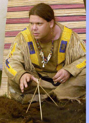 Jon Jordan tells stories about how the Western Sioux lived during a demonstration in Des Plaines. Bob Chwedyk | Staff Photographer