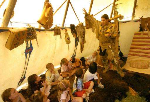 Students squatted on buffalo skins sprawled under a 20-foot-tall teepee, connecting to a time and life distant from their own modern lives.