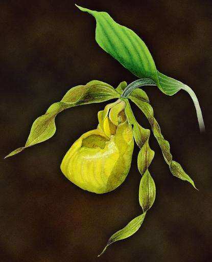 Artists from the local chapter of a science illustrators group sketched and painted plants that were important or sacred to Native Americans. This drawing depicts a lady slipper plant Courtesy of Aurora University