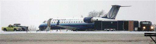 At Dane County Regional Airport in Madison, Wis., an incoming Mesa Airlines regional jet flying for United Express slid off the pavement after failing to make a turn onto a taxiway, but no injuries were reported among the 25 passengers, said United Airlines spokesman Jeff Vick.