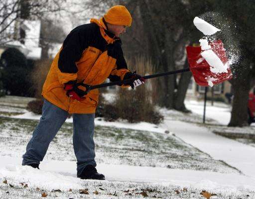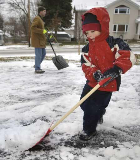 Michael Utley, 12, gets an early start shoveling snow in front of his parents home in West Dundee at 2pm. George LeClaire | Staff Photographer