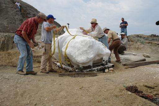 The fossil was found in 1999 in North Dakota and now is nicknamed "Dakota." It is being analyzed in the world's largest CT scanner, operated by the Boeing Co. The machine usually is used for space shuttle engines and other large objects. Researchers hope the technology will help them learn more about the fossilized insides of the creature.