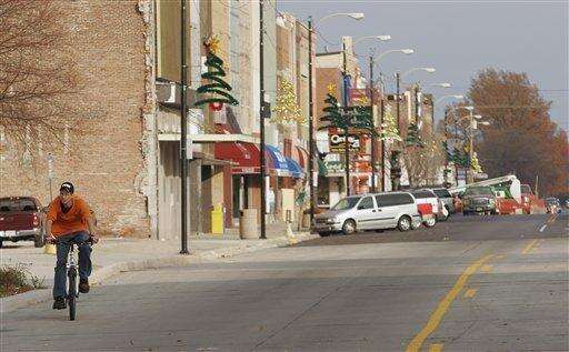 A bike rider peddles in downtown Mattoon in this Nov. 19, 2007 file photo. Associated Press