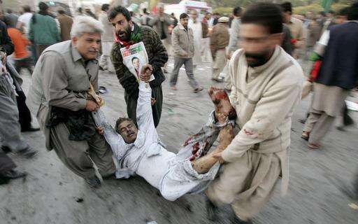 Bhutto, 54, was struck down amid scenes of blood and chaos as an unknown gunman opened fire and, according to witnesses and police, blew himself up, killing 20 other people.