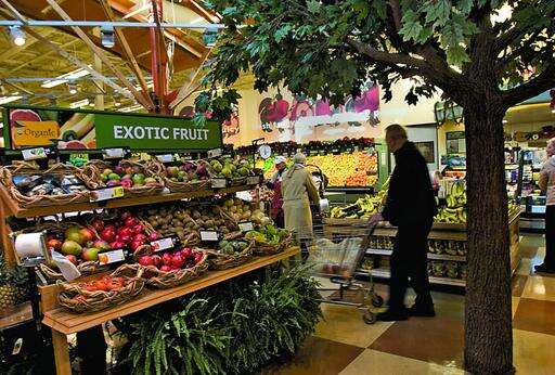 Today, the trend is toward glamming up the grocery experience. You'll see lots of attractive displays of prepared foods, as well as a deconstruction of the traditional aisle layout in favor of a more open market feel.