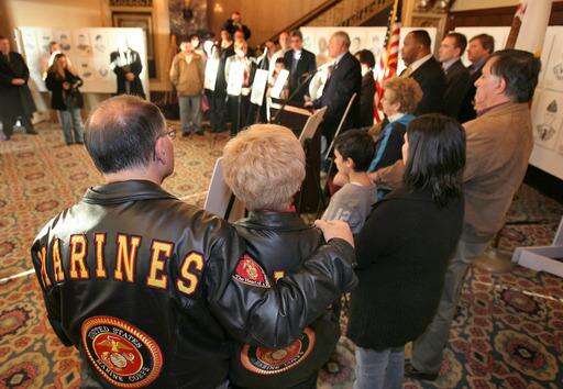 Quinn was joined Wednesday by family members of fallen soldiers: Maher; Army 1st Lt. David Giaimo and Army Sgt. First Class James Ochsner, both of Waukegan; Marine PFC Geoffrey Morris of Gurnee; Marine Cpl. Phillip Frank of Elk Grove Village; Marine Sgt. Edward G. Davis, of Antioch; and Army Staff Sgt. Donald Farmer, of Zion.