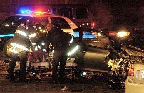 The driver from the first car was taken to Sherman Hospital in Elgin, while the other two victims were sent to St. Alexius Medical Center in Hoffman Estates, officials said.
