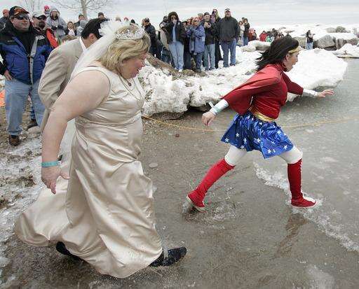 Jackson, sporting a white veil and wedding dress, and Egan, wearing a tuxedo, ran into frigid Lake Michigan to raise money for Special Olympics Illinois during the 2008 Law Enforcement Torch Run Polar Plunge off Sunrise Beach in Lake Bluff.