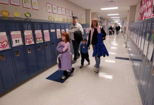 The Nailor family of Mundelein -- Tom, Jill, and their children Emily, 7, and Grant, 4, -- tour the new Fremont Intermediate School Sunday after a dedication ceremony for the Mundelein school. Mark Black | Staff Photographer