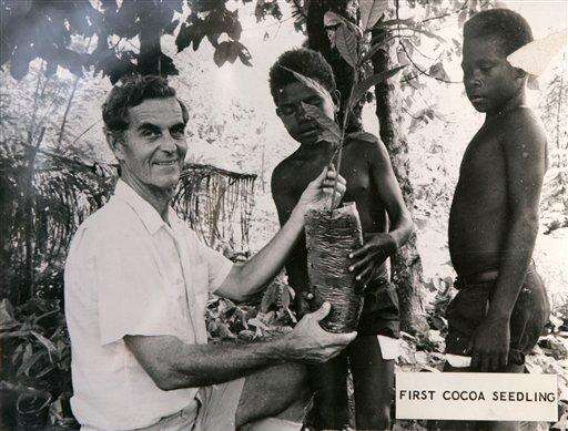 Fred Hargesheimer is seen with a pair of native children on the island of New Britain in an undate handout photo at Hargeshiemer's home in Grass Valley, Calif. Associated Press