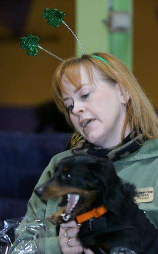 The Suburban Chicagoland Dachshund Lovers group sponsored the St. Patrick's Day-themed get-together to raise money for Midwest Dachshund Rescue, Dachshund Rescue of North America, Almost Home Dachshund Rescue Society and Dachshund Orthopedic Disc Group E-mail Resource.