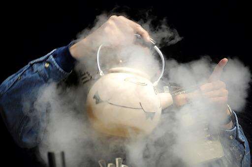 The children and their parents jammed Fermilab's Ramsey Auditorium, watching the three teachers use dry ice, liquid nitrogen, hydrogen, magnets and more than a little humor to demonstrate scientific principles.
