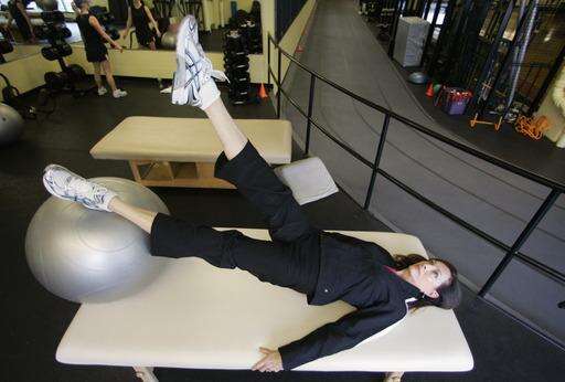 Gayle Parseghian, a 55-year-old ballet teacher, goes through stretching exercises at the Rehabilitation Institute of Chicago during a four-week, intensive "boot camp" to relieve chronic pain. Associated Press