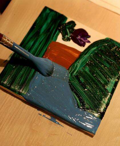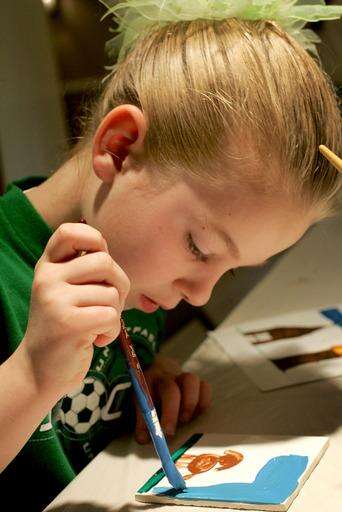 Lindsey Fitch, a second-grader at St. Mary School in West Chicago, paints her tile illustrating what peace means to her. Bev Horne | Staff Photographer