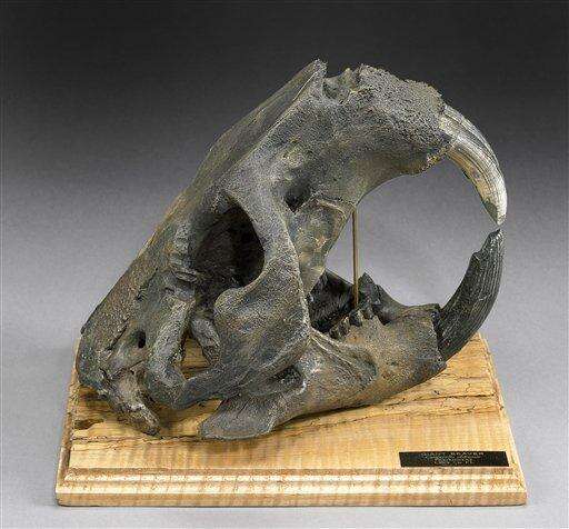 This a giant prehistoric beaver skull also will be put up for auction. Associated Press