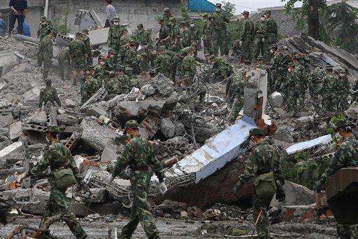 Rescuers digging, scraping for survivors at epicenter of China quake