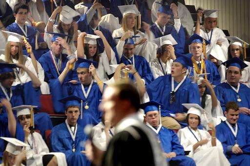 As they sat in the school auditorium Sunday, making final preparations before proceeding into the gymnasium, some students were uncertain about the protocol for the tassels hanging from their mortarboards.