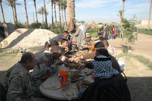 Usually the local sheik either brings food to the place or invites the U.S. troops to dinner after completion.