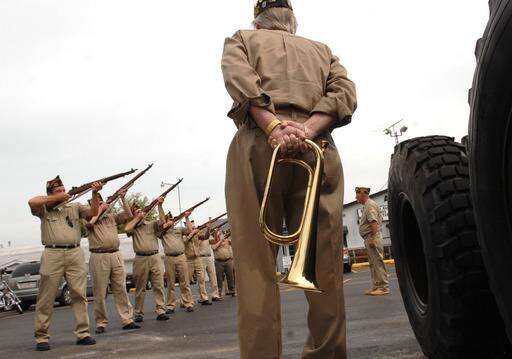 Along suburban streets, people waved American flags as a bugler performed taps.