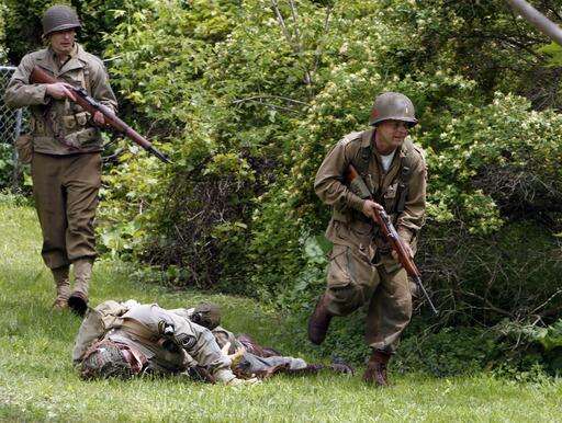 The World War II Historical Re-enactment Society staged a re-enactment Monday of a small unit engagement in Normandy during a Memorial Day celebration at Batavia VFW Post 1197. George LeClaire | Staff Photographer