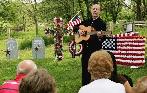 Roger Kotecki performs the "Battle Hymn of the Republic" as part of Memorial Day ceremony at Kline Creek Farm in Winfield. Tanit Jarusan | Staff Photographer