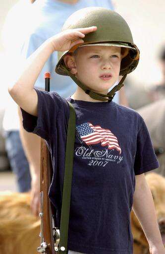 Anthony McMahon, 6, of Mount Prospect looks ready for combat as he salutes the color guard Monday during the Mount Prospect Memorial Day parade. </element> Mark Black | Staff Photographer