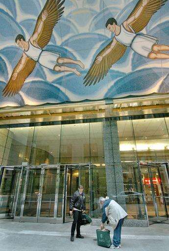 The ovenbird crashed just below a mosaic of Daedalus and his son, Icarus, who died flying too close to the sun.