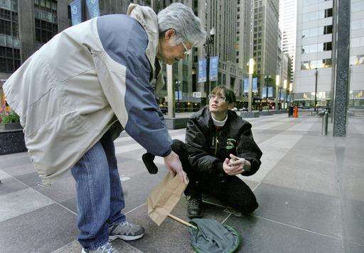 The two women reconvene at Madison and Clark, comparing notes before another street sweep.
