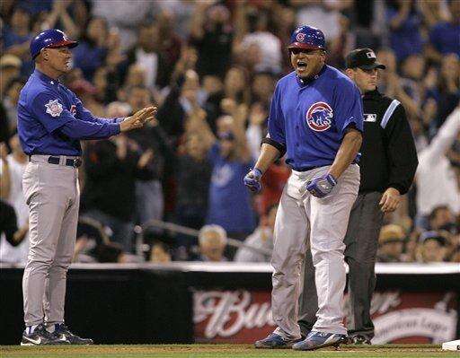 The Cubs went ahead 4-3 in the fifth on Fukudome's sacrifice fly. They added on in the sixth with Alfonso Soriano's sac fly and Theriot's RBI single, before Edmonds hit a run-scoring double in the seventh.
