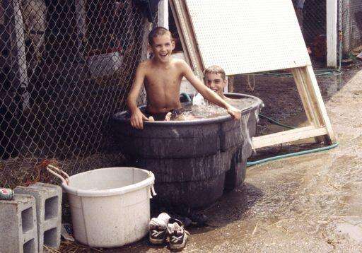 That tub of water was actually there for the livestock to drink on a hot day at the fair. "These guys just decided to go for a swim. In all the years of the fair, they're the only two that I've seen do that."