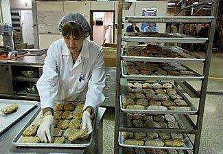 The kitchen lab where Kennedy and a number of other food technologists whip up the latest MRE dishes resembles a cross between a school cafeteria kitchen and a third-world operating room. There are walk-in freezers, multiple meat slicers, a retorting machine bigger than a mid-size car, and lab coats and hair nets (for both head and facial hair) are required.