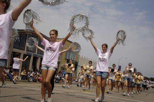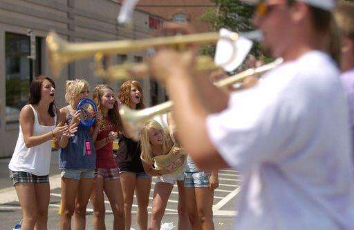 Young fans whoop it up for the Hampshire High School marching band Sunday as part of Coon Creek Days Festival in Hampshire.
