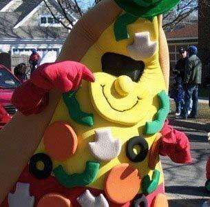The mascot for Braconi's Pizza in Naperville hopes to make baseball fans hungry.