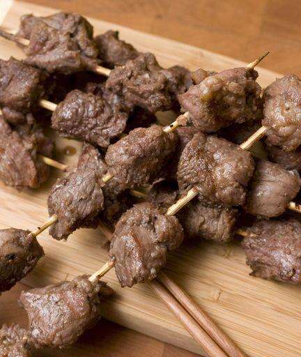 Thread the meat onto skewers, taking care not to crowd the meat. The pieces should barely touch.