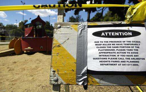 The Arlington Heights Park District recently cordoned off a sandbox in Recreation Park with yellow tape because the cicada killer wasp has returned to the box this year.