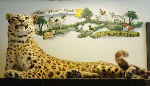 It's an animal hospital that has the sounds and looks of a rain forest, showcasing a stuffed leopard, pictures of toucans, panthers, snakes and even a real yellow-headed Amazon parrot resting on a perch behind the check in counter.