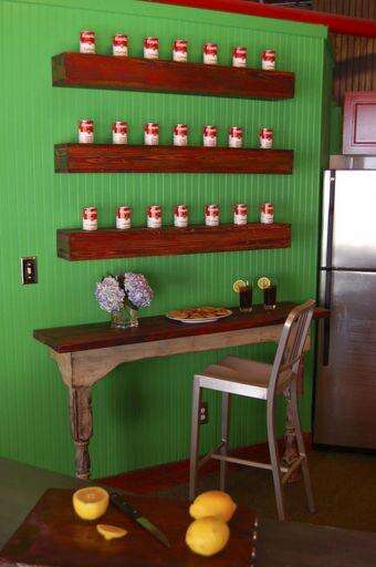 • Display your favorite nonperishable foods on open shelving. For example, streamline your family's breakfast routine (while freeing up space in cabinets) by displaying several cereals in transparent canisters on a shelf next to a stack of pretty bowls and spoons, Flynn says.