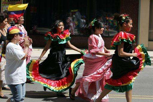 Dancers with Somos Colombia, Sociedad Civica, Colombiana, dance and march in the Puerto Rican Day parade Saturday.
