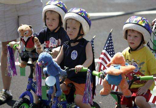 Triplets Lincoln, Erik and Reed Thibaudeau, all 4 and from Grayslake, participated in a bike decorating contest on Saturday at tthe Grayslake Summer Days festival.