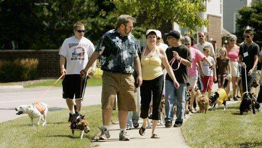 Wheaton Mayor Mike Gresk leads a group of dog walkers during the "Dog Wash 'N Walk" Sunday at the Illinois Institute of Technology in Wheaton and organized by Friends of the DuPage County Animal Care and Control Foundation. Tanit Jarusan | Staff Photographer