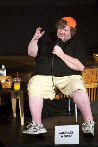 Michael Moore speaks during a panel discussion at the Traverse City Film Festival in Michigan. Associated Press