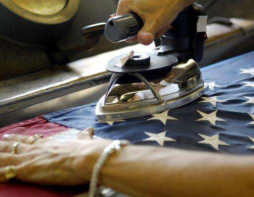 Depending on the flag's size, it's first cleaned with a petroleum-based solvent in one of three industrial sized washers, then dried. Flags are later pressed, with employees taking care not to let them touch the ground, Marberry said. Some stains can be spotted out.