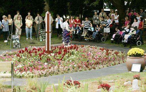 Hilsabeck, who worked as the day school's principal, was honored for her work with the center with a commemorative stone in the shape of a butterfly with imprints of both her hands and those of her son David.