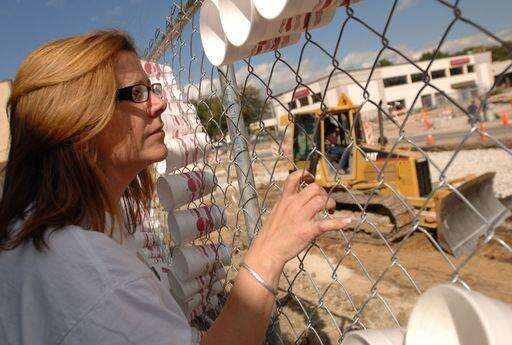Friday morning, Murphy updated her makeshift sign of foam cups through the chain-link construction fence blocking her entrance to read "58 Days Left Weather Permitting."
