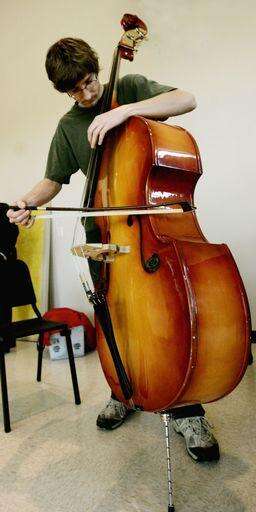 North Central College junior Mike Krieglstein practices his upright bass in a rehearsal room at the new Wentz Concert Hall and Fine Arts Center. The rooms are designed to be soundproof so students can practice in multiple rooms at once without being disturbed. Tanit Jarusan | Staff Photographer